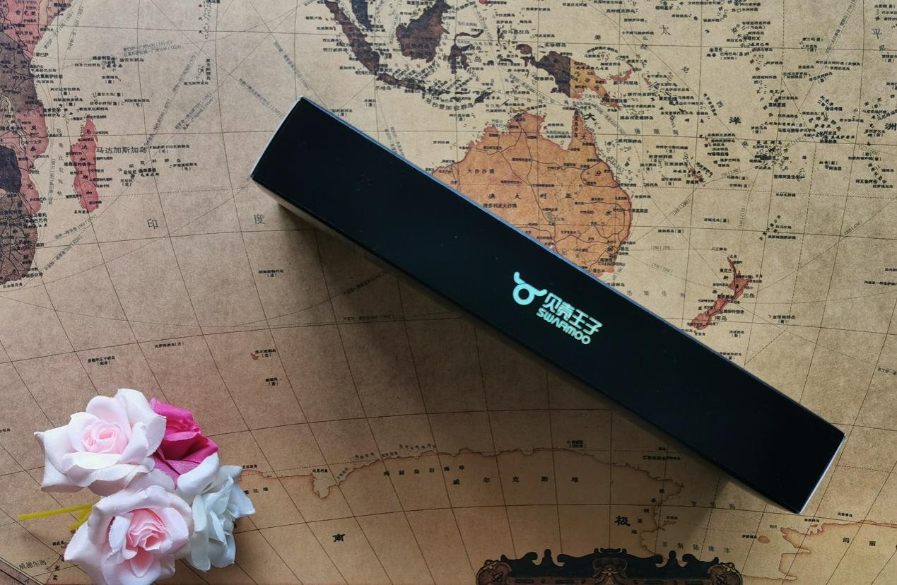 包裝盒右側居中位置是“牛頭”LOGO、中文簡體“貝克王子”及英文SWARMOO。