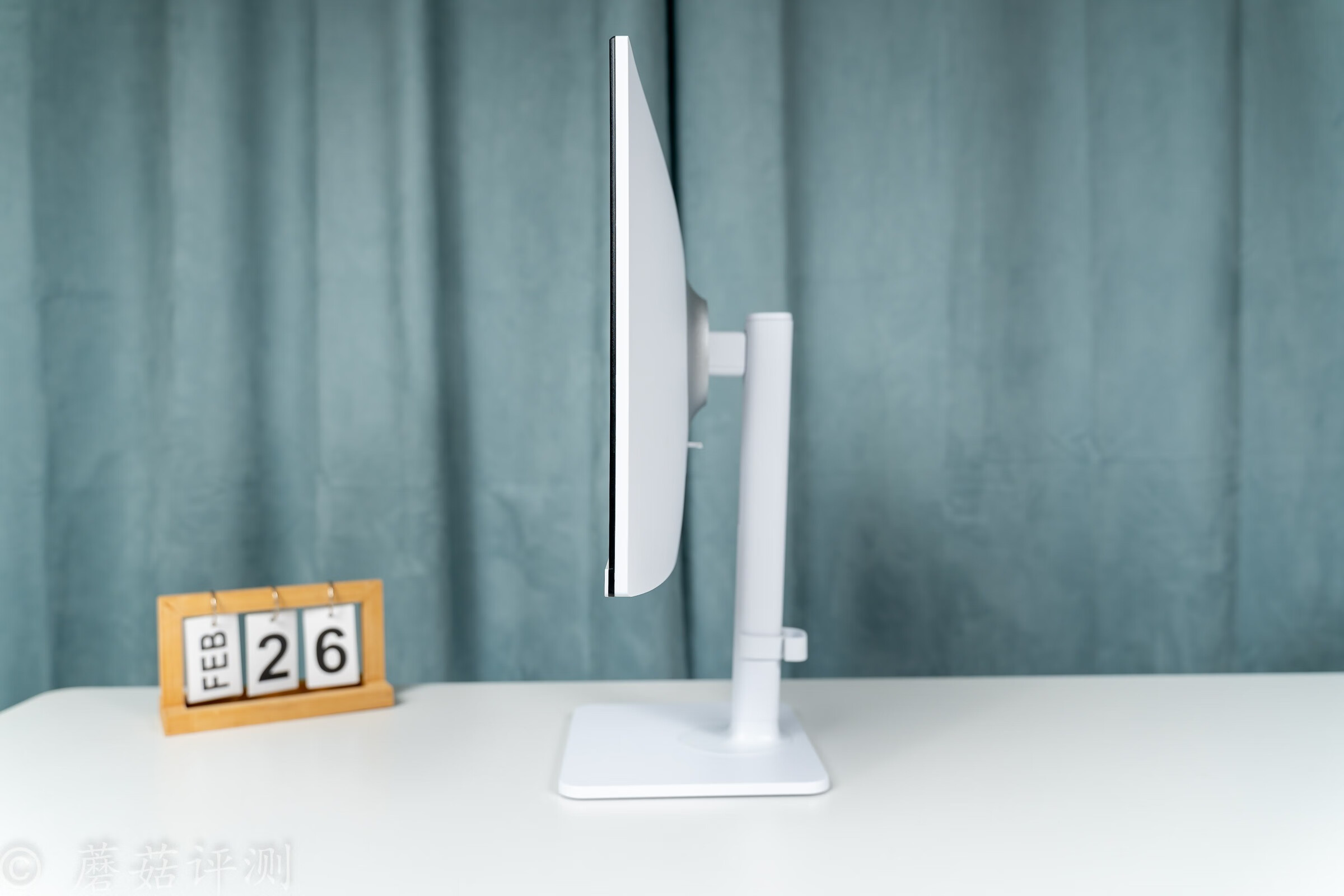 另外,這臺顯示器在功能性方面的表現(xiàn)也十分強大。其顯示器支架體驗越級,可以輕松調(diào)節(jié)高度、左右旋轉(zhuǎn)、俯仰、平面旋轉(zhuǎn)等。內(nèi)置了揚聲器,平時使用非常方便,完全不用再連接音箱、耳機之類的。