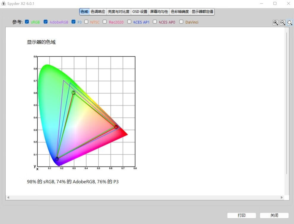 ▼默認在sRGB模式下,顯示器的實測色域在98%,表現(xiàn)非常不錯。