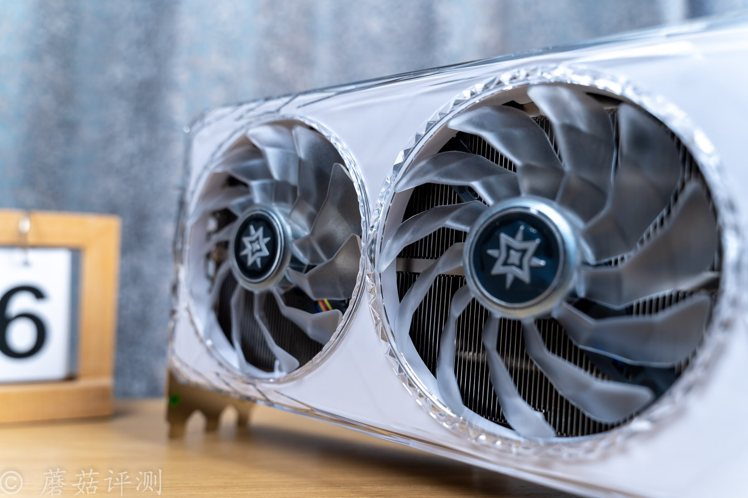 ▼顯卡散熱風扇的扇葉是磨砂質(zhì)感、半透明的,有一定的柔光效果,也支持ARGB燈效。