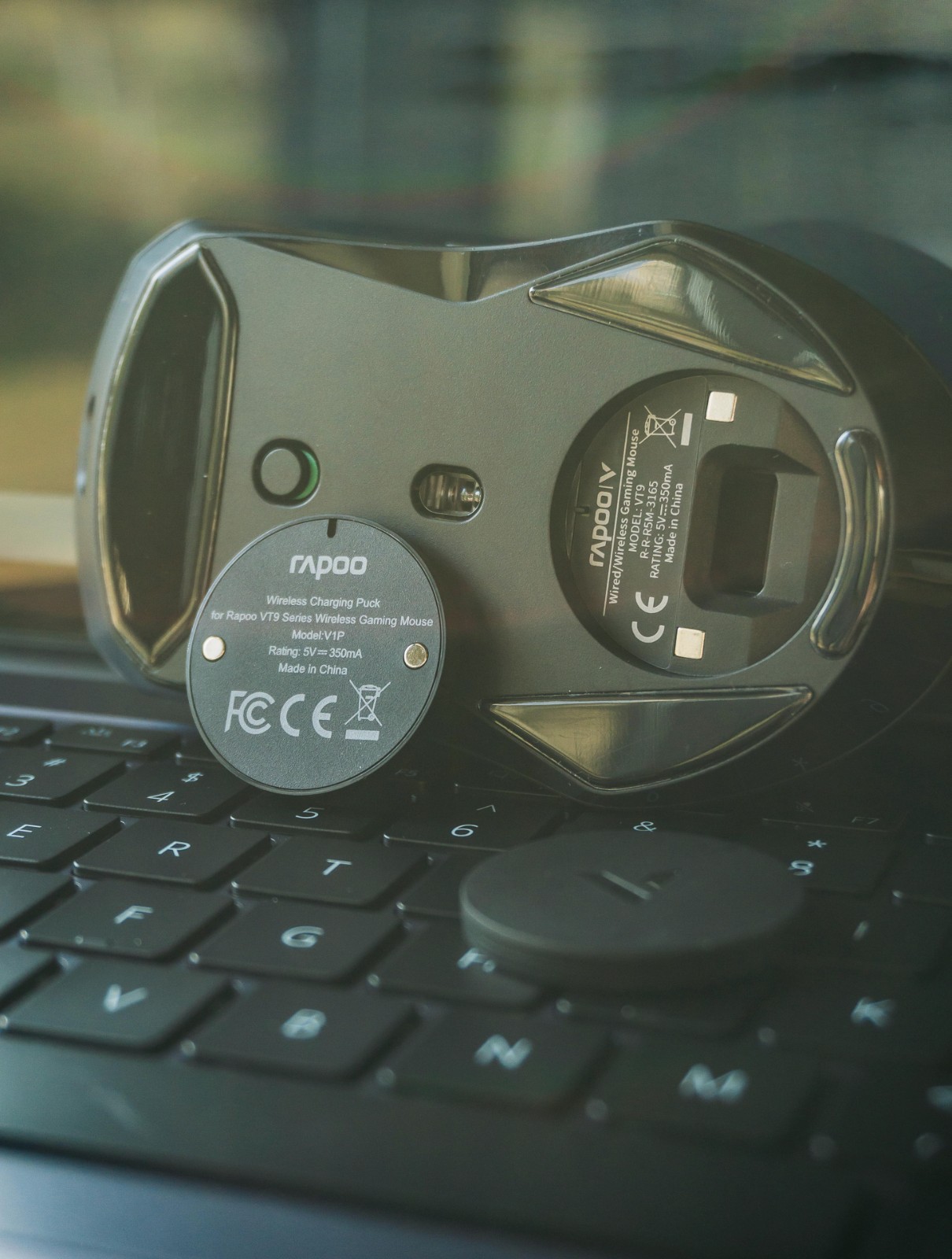 鼠標底部是無線接收器收納倉,同時也是無線模塊所在地,鼠標本身沒有無線充電功能,但只要再花30幾十元加購一個VT9無線充電模塊,就可以實現。