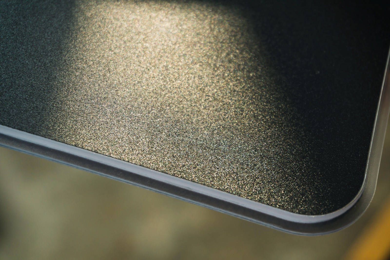 首先,它采用了PC細砂硬質表面,不可折疊,堅硬的材質也會導致手腕長時間撐在上面沒有軟墊那么舒服;尺寸與我的16英寸筆記本電腦一樣大,顯然它不能墊在鍵盤下面,所以購買它之前一定要搞清楚它是否與桌面尺寸匹配。